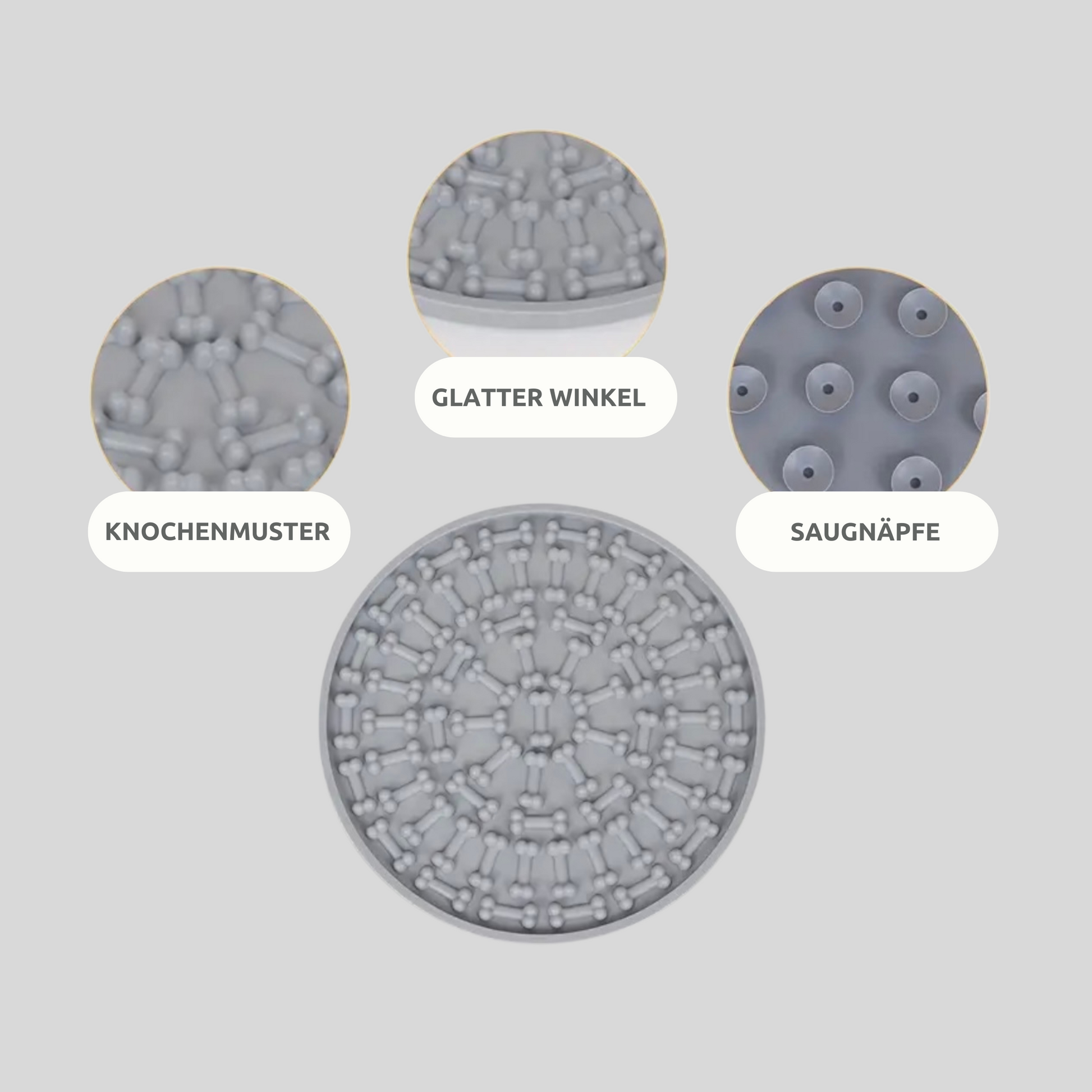 Der Mampa - Napf aus Silikon unterstützt ein langsameres Fressen und kann dadurch zur besseren Verdauung bei Hunden beitragen. Die strukturierte Oberfläche regt zum Lecken an und verhindert hastiges Schlingen.